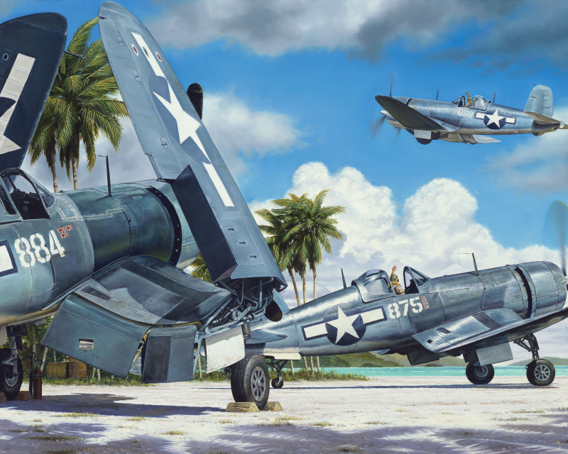 Into the Yonder by Terrance Fogarty-Experience the courage and determination of World War II in this beautiful painting. Watch as American pilots prepare their legendary Vought F4U Corsair fighter planes for takeoff, ready to defend freedom in the Pacific. The Corsair was one of the most feared aircraft of the war, flown not only by American forces but also by brave pilots from the United Kingdom and New Zealand. This licensed artwork captures the intense moment before battle—the roar of engines, the focus in the pilots' eyes, and the weight of their mission. The painting honors the heroism and sacrifice of these Allied warriors who flew into danger to protect the entire world. Perfect for history buffs, aviation enthusiasts, and anyone who respects the bravery of those who served.