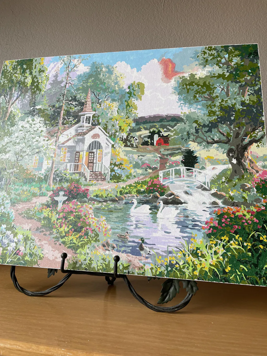 This was a challenging piece with many detaiIs. gave the final product to my mom and she loves it. Credit goes to the original talented artist who painted this.