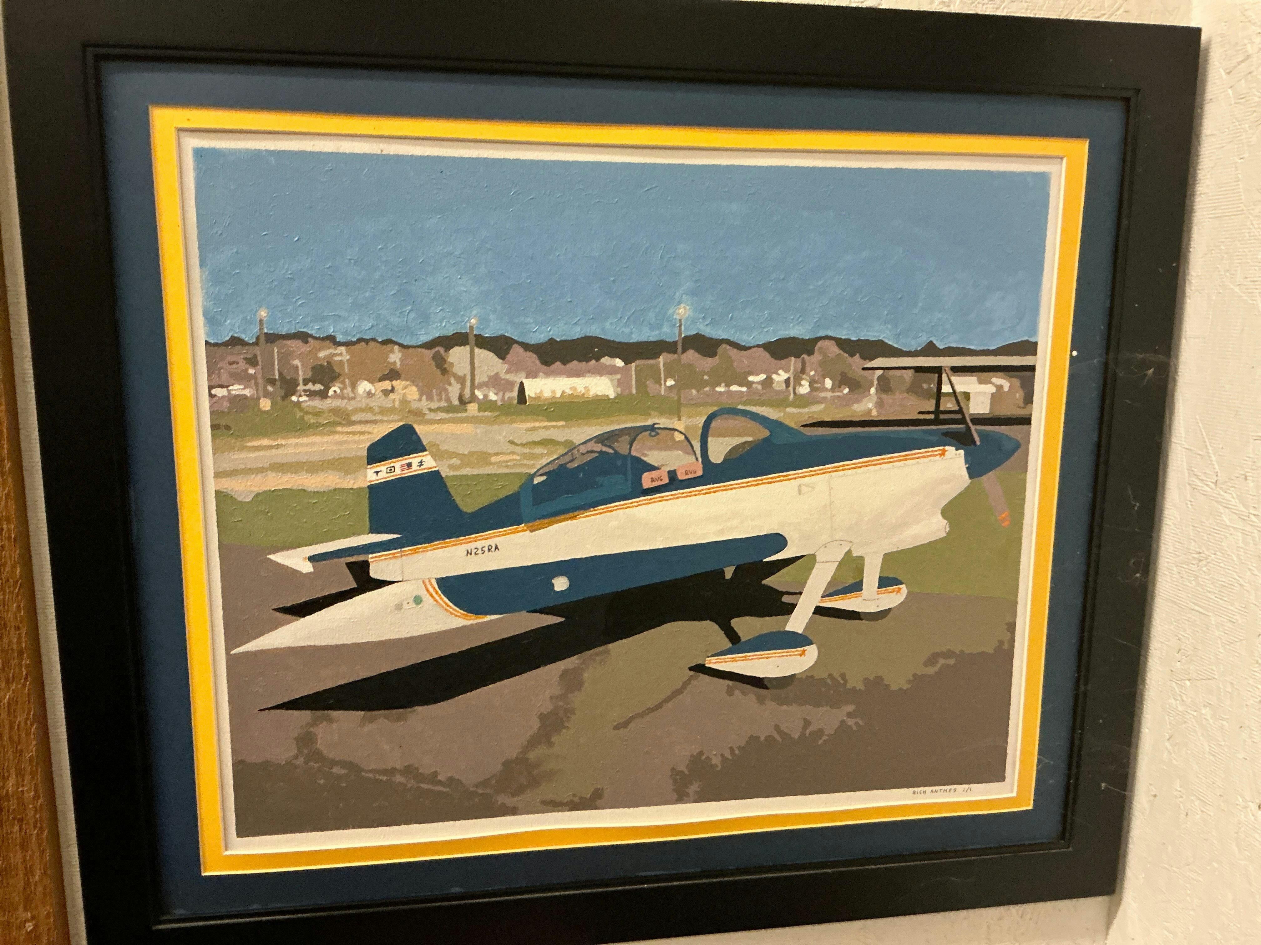 My brother builds and flies radio controlled airplanes. Over the years he’s built a lot. This is from a photo of one of his larger planes. The guide showed a taupe color on the wings but I changed it to white. Tom said it was good either way. Big Thanks to the young man who does the custom paintings!