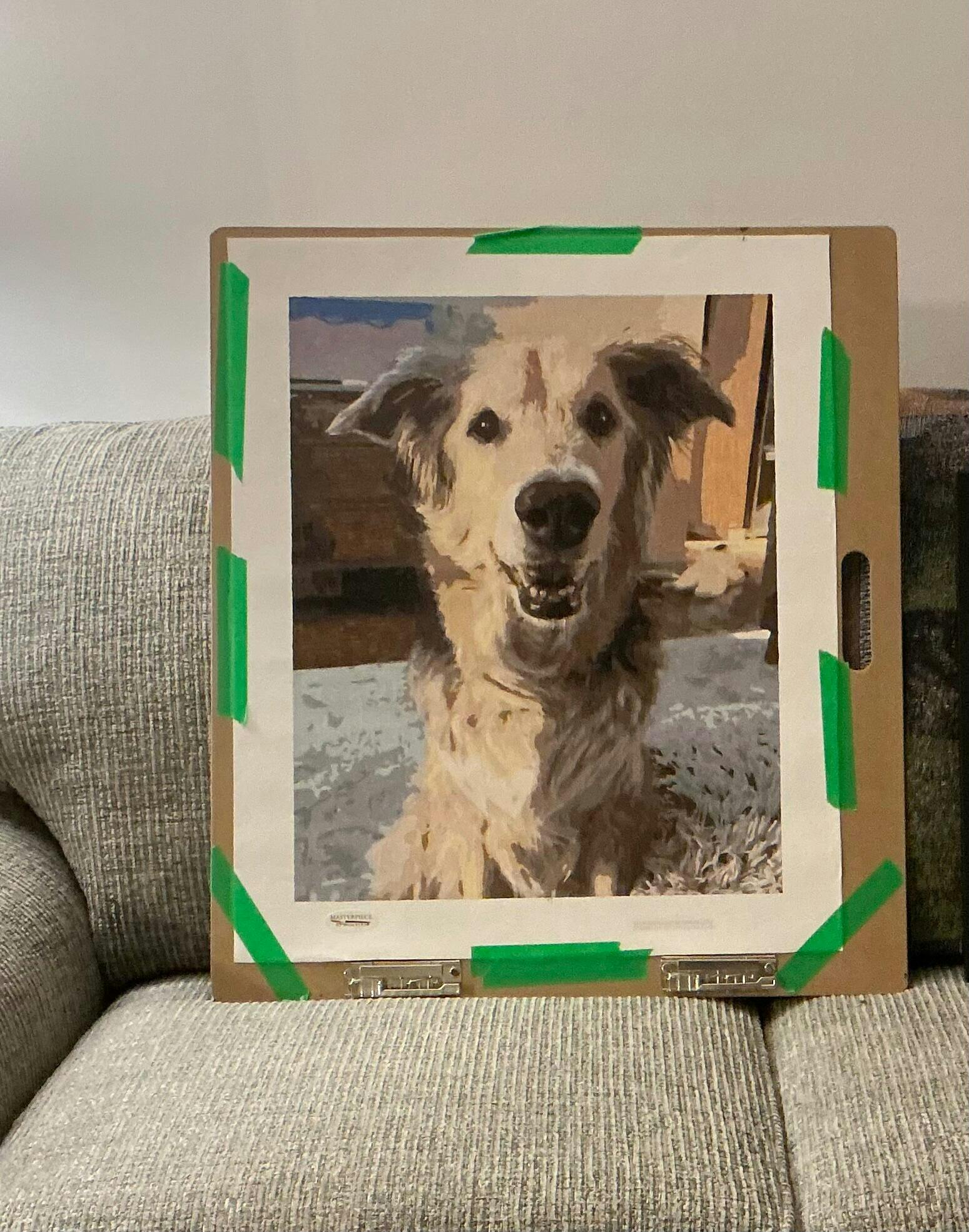 Thor is my brother's only family in Washington. He adores his dog. I wanted to send him something special for his 65th birthday. I had to call and ask about my order. Masterpiece had tried to contact me. They explained why the picture I sent in would not work and how to send one in that would. It was so nice to talk to someone who spoke ENGLISH and had excellent customer service skills. When my paint kit arrived, it was in a tube and not FOLDED. The brushes and paint were good quality. There was enough paint left over to blend colors. I watched the videos that were offered and then tried them on my picture. My picture does not look like a paint by number! I am very impressed with Masterpiece by numbers.