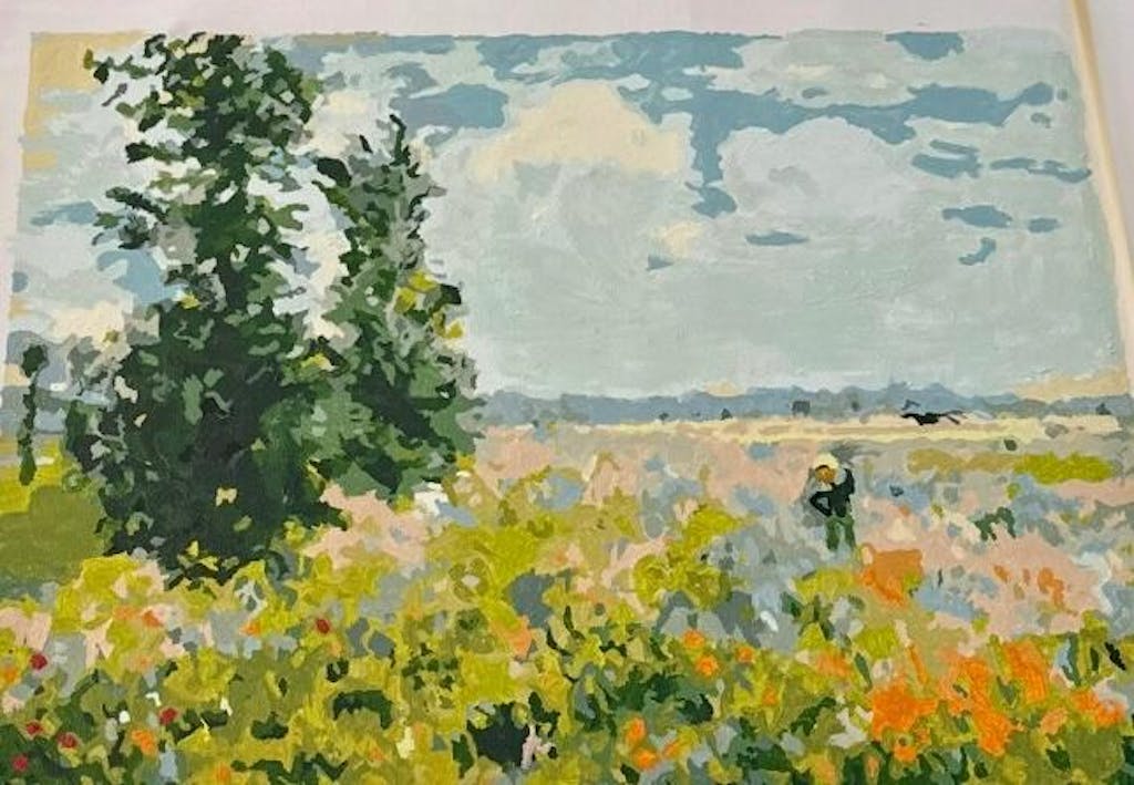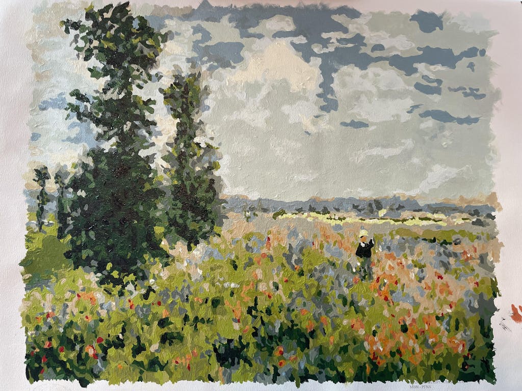 I really like how this painting turned out. It is almost an exact replica of the original Claude Monet painting during the Impressionism period. The painting is simple in its design but it says so much. It instills a sense of wonderment in me and others I would expect.