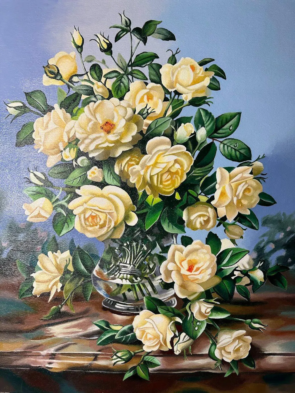 Princess Diana Roses by Albert Williams - Each Albert Williams painting is of a flower that was picked from his garden and painted at his home studio.