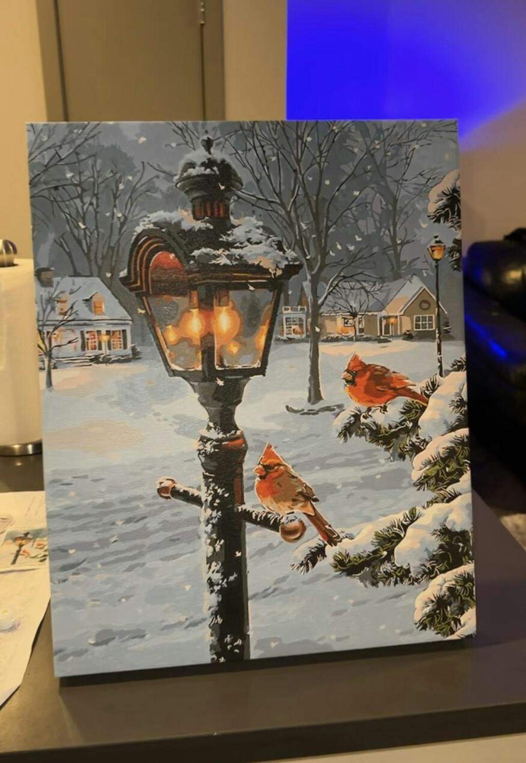 I had bought this to paint for my mom for a Christmas gift. I started in the end of September and finished a week before Christmas. It definitely took some time, but I was satisfied with how it turned out and my mom loved it.!